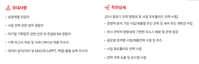 👉 사업 전략 관련 업무 경험자와 기획 보고서 작성 우수자를 우대 채용하네요!